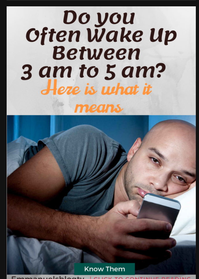 Ideally, these periods are the times when you can get the best sleep moments. But waking up to these odd hours daily should be enough to spark your interest. It doesn't mean that you have a spiritual problem, as some people might think.